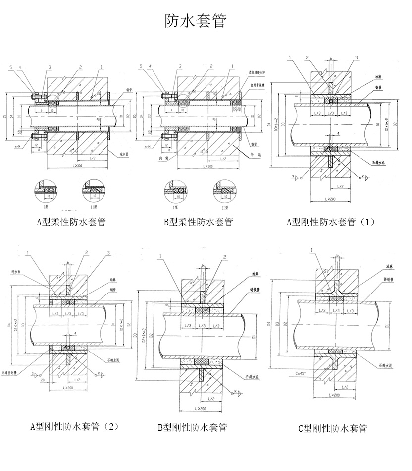 防水套管:剛性防水套管、柔性防水套管