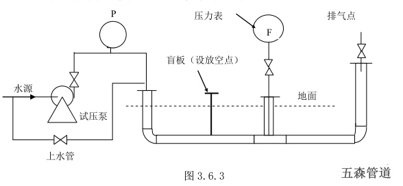 6.1埋地管安裝完畢,進(jìn)行水壓試驗,水壓試驗應(yīng)達(dá)到如下條件: