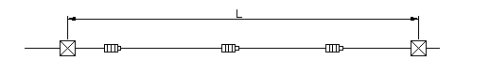 如圖所示,安裝一次性補(bǔ)償器的管段應(yīng)與其他管段用固定墩隔開,以確保吸收定長管道預(yù)熱伸長量。為確保其精確,可在預(yù)熱前計算定長管道理論伸長量,然后在各一次性補(bǔ)償器上作出標(biāo)記,使各個一次性補(bǔ)償器壓縮量之和等于定長管道的計算伸長量,待預(yù)熱伸長到位時,將補(bǔ)償器二次焊口焊接固定。管道在運(yùn)行中不再有伸縮運(yùn)動,其溫度變化引起的管道長度伸縮將轉(zhuǎn)化為管道的內(nèi)應(yīng)力。
