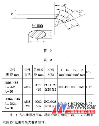 式中 Dp ———管坯外徑; R———彎頭曲率半徑;