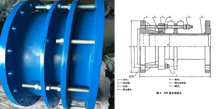 雙法蘭松套限位補(bǔ)償接頭適用于兩邊均與法蘭連接,安裝時(shí)調(diào)整產(chǎn)品兩端與法蘭的連接長(zhǎng)度,對(duì)角依次均勻擰緊壓蓋螺栓,再調(diào)整好限位螺母,這樣就能讓管道在伸縮量范圍內(nèi)可以自由伸縮,鎖定伸縮量,確保管道的安全運(yùn)行。