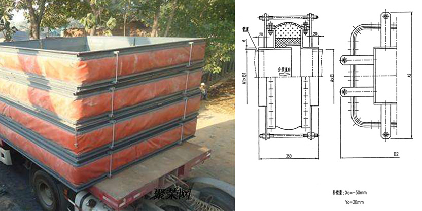 矩形非金屬織物補償器主要由非金屬圈帶、隔熱材料和鋼結構件組成,其中非金屬圈帶由纖維織物、硅橡膠、氟料等性能優異的非金屬材料優化結合而成,其產品強度、補償量、密封性、耐腐蝕性及壽命等性能指標均可與國外同類產品相媲美。