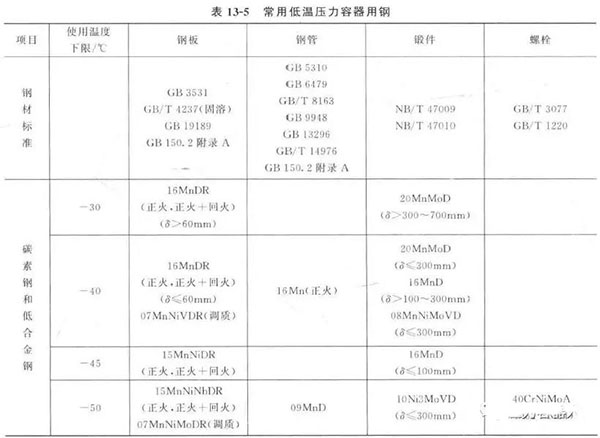 常用低溫壓力容器用鋼見表13-5。