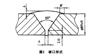開坡口的目的在于保證焊透以及使焊接生產順利進行確保焊接質量和接頭性能,減小焊接變形,降低焊接材料的消耗。管口組對是保證焊接質量的先決條件,本研究采用V形坡口,如圖1所示。