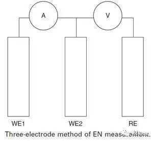 如果 ECN 作為兩個(gè)相同工作電極之間的電流被測(cè)量,這種工作電極組合的電位可通過(guò)測(cè)量與另一參比電極或第三工作電極之間的電位而得到。這樣可以通過(guò)計(jì)算電位標(biāo)準(zhǔn)差和電流標(biāo)準(zhǔn)差的比值而得到電化學(xué)噪聲電阻 Rn,Eden 等人提出了面積與電位標(biāo)準(zhǔn)偏差的乘積與電流標(biāo)準(zhǔn)偏差的商得到的參數(shù),該參數(shù)具有電阻乘以面積的單位,被稱為電化學(xué)噪聲電阻,這是測(cè)量電化學(xué)噪聲的簡(jiǎn)單方法。