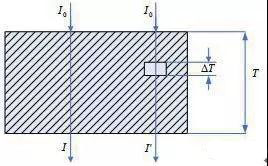 圖 1 為射線穿透物質(zhì)時(shí)的衰減示意圖,透射線強(qiáng)度;當(dāng)存在一定尺寸的缺陷時(shí),透射線強(qiáng)度(式中I0:入射線強(qiáng)度、μ:吸收系數(shù),μ‘:缺陷部位吸收系數(shù),Is:散射強(qiáng)度)。射線對(duì)缺陷的檢驗(yàn)?zāi)芰Γc缺陷在射線透照方向上的尺寸、其線衰減系數(shù)與物體的線衰減系數(shù)的差別、散射線的控制情況等相關(guān)。只要這些方面具有一定的值,則缺陷將產(chǎn)生一定的物體對(duì)比度,它就可以被射線檢驗(yàn)出來(lái)。