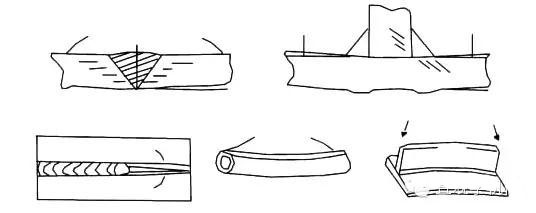 | 偏弧 | (1)在直流電焊時,焊件所生磁場不均,使電弧偏向。 | (1)電弧偏向一方置一地線,或正對偏向一方焊接,或采用短電弧,或改正磁場使趨均一,或改用交流電焊 |