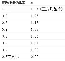 如果是環(huán)形晶片,則不使用k值,而是使用晶片直徑(D)代替長度項: