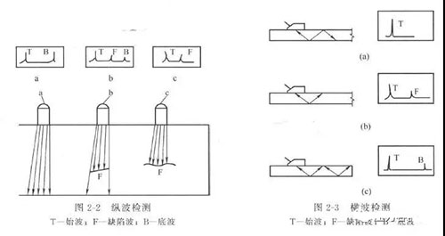 a . 縱波檢測(cè)    由直探頭發(fā)射和接收的波型,主要用于鋼板的檢測(cè)(圖2 - 2 )。