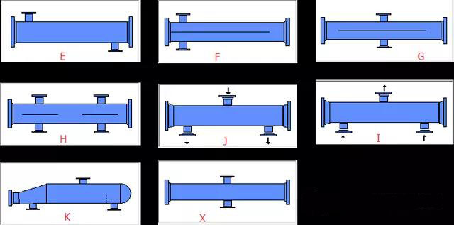 E型殼體:為單程殼體,在設計過程中一般優先選擇,它適用于所有的情況,單相換熱更優,缺點是壓降較大。