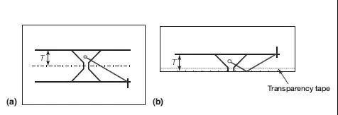圖3.焊縫橫截面鏡像插圖:(a)在透明薄膜上(b)沿中心線折疊之后
