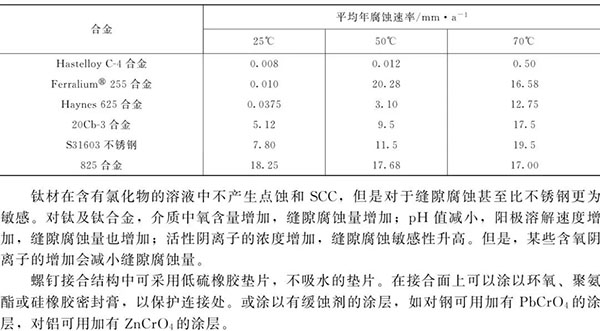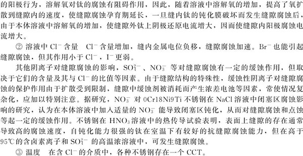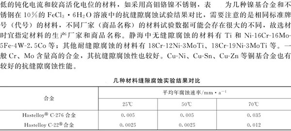 縫隙無法避免時,選用耐縫隙腐蝕的材料。選用在低氧酸性介質(zhì)中不活化并具有盡可能