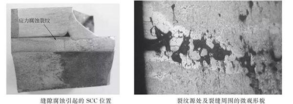 縫隙腐蝕往往發(fā)生在螺栓、墊片、設(shè)備與接管的法蘭面等機械連接的構(gòu)件所形成的縫隙部位,管殼式換熱器管板與管束連接部位,設(shè)備焊接缺陷如未焊透和咬邊等也是縫隙腐蝕的多發(fā)部位。這些部位通常存在較大的工作應(yīng)力或焊接殘余應(yīng)力,在應(yīng)力作用下,縫隙腐蝕可使局部介質(zhì)形成材料的 SCC 敏感環(huán)境,腐蝕轉(zhuǎn)變 SCC 敏感性,加速了結(jié)構(gòu)的破壞。另外,在設(shè)備運行中產(chǎn)生的腐蝕產(chǎn)物、沉積物、碎屑、污泥和結(jié)垢附著在金屬表面形成的縫隙也會發(fā)生縫隙腐蝕。