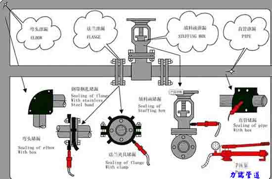 二、管道彎頭、三通、直管泄露的密封方法