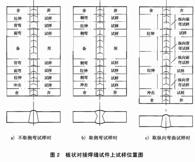 理化檢驗:拉伸兩組,面彎一組,背彎一組,有時還要一組沖擊;