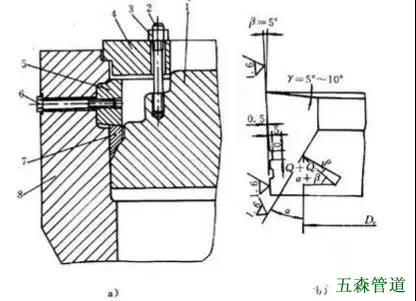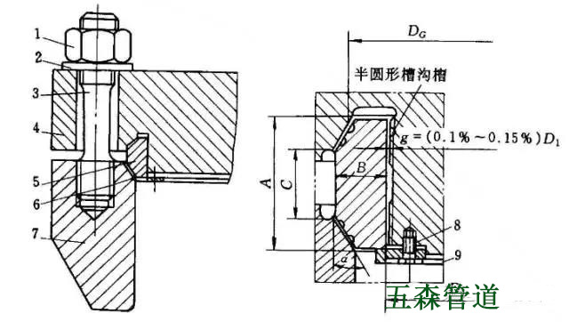 6-軟金屬墊片;7-圓筒端部;8-螺栓;9-托環(huán)