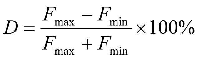 嚴(yán)格說來,恒力彈簧在其工作過程中對(duì)管道支撐點(diǎn)的力并不是恒定不變的,這是因?yàn)閺椈芍Ъ芨鬟\(yùn)動(dòng)部件之間存在摩擦力,而且各部件的尺寸、彈簧的剛度等都可能存在制造偏差,這些因素都會(huì)導(dǎo)致了恒力彈簧在其工作行程范圍內(nèi)對(duì)支撐點(diǎn)的力有少量的變化。一般情況下,標(biāo)準(zhǔn)恒力彈簧支吊架在其全程位移過程中的最大和最小載荷偏差應(yīng)控制在某個(gè)數(shù)值范圍內(nèi),而工程上常用恒定度這一概念來評(píng)判恒力彈簧的載荷變化。所謂恒定度是指恒力彈簧在其全行程范圍內(nèi)的最大、最小載荷值之差與最大、最小載荷值之和的百分比,用式子表示即為: