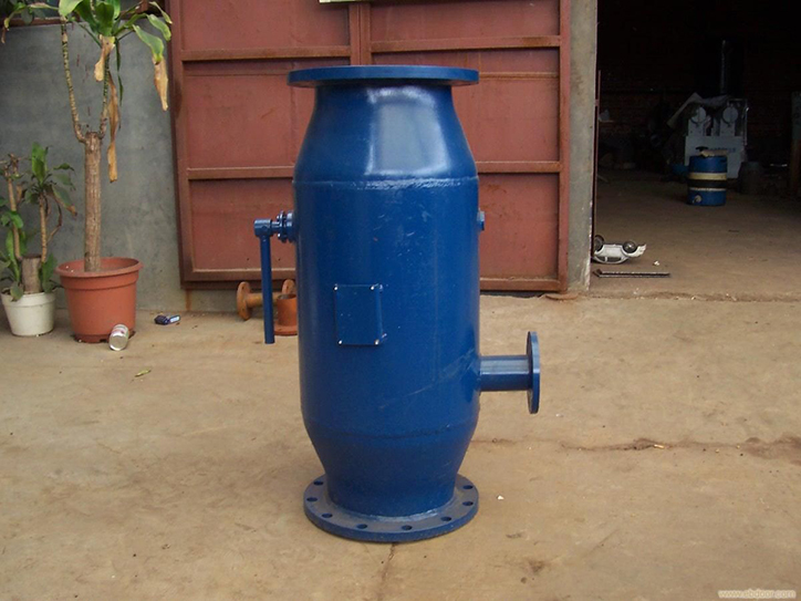 反沖洗除污器主要由優質碳鋼筒體,不銹鋼楔型濾網,蝶閥和排污裝置所組成。當過濾器工作時,蝶閥處于開啟狀態,水流自入口進入過濾器,經過濾網過濾后到出口,水中污物雜質被濾網攔截。當過濾器需要排污時,關閉蝶閥。打開排污閥,水流經過濾前半程過濾,一部分水流直接流人系統,另一部分水流由濾網外側流入內側,經排污口排出。起到反向自動沖洗濾網和排除污物雜質的作用。整個反沖排污過程不用關閉系統,實現了在線排污。